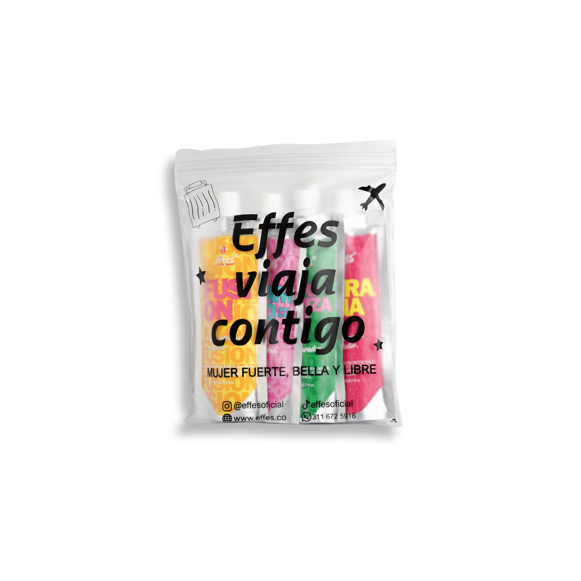 El Kit Capilar de Viaje Effes® 80ml reúne los 4 básicos para mantener tu rutina completa estés donde estés: limpieza suave, reparación profunda, nutrición y protección contra el calor.